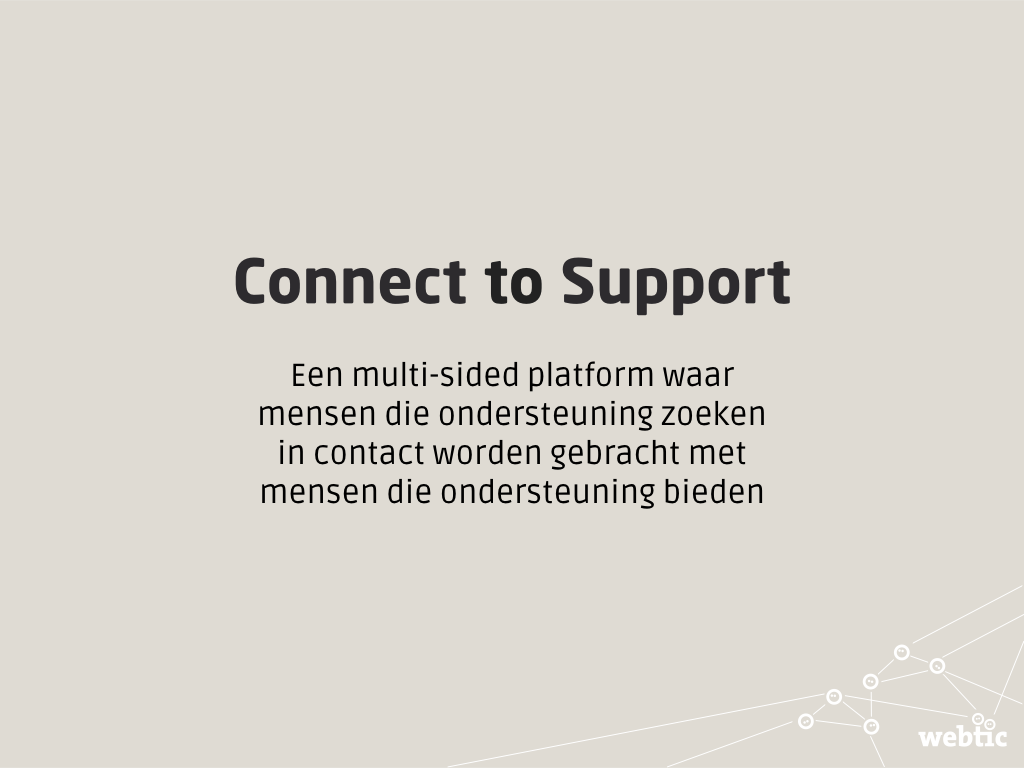 Connect2Support brengt mensen die ondersteuning zoeken in contact met mensen die ondersteuning bieden. We onderzoeken hierbij hoe AI het proces van een goede match kan verbeteren en versnellen. En willen daarmee de drempel voor mensen die op zoek zijn naar ondersteuning verlagen. Het SIDN fonds steunt dit project en zorgt dat de kennis van andere pilot partners binnen handbereik komt.